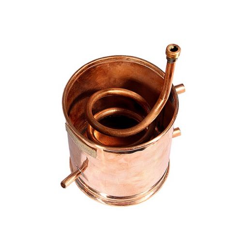 Дистиллирующее устройство медное 6 л в Кемерово – самый древний аппарат для приготовления крепких напитков. Главное отличие этого устройства от обычного самогонного аппарата – его материал изготовления. Медь вступает в реакцию с жидкостью и, осаждая оксид серы, делает вкус алкоголя мягче.