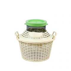 Бутыль в пластиковой корзине (5л) может использоваться для хранения жидких субстанций,  их перемещения, а также сохранения алкогольных напитков в период их брожения. В комплект, кроме стеклянного бутыля, входит пластиковая плетеная корзинка черного цвета и крышка.